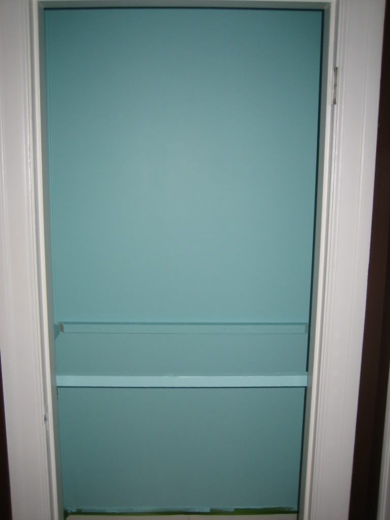 Not the best picture, but the inside of the closet was an absolute trainwreck. Crumbling plaster, missing plaster from taking the closet organizer because the previous owner had a love affair with glue, and a fluorescent light that makes it appear as if it's an interrogation cage.